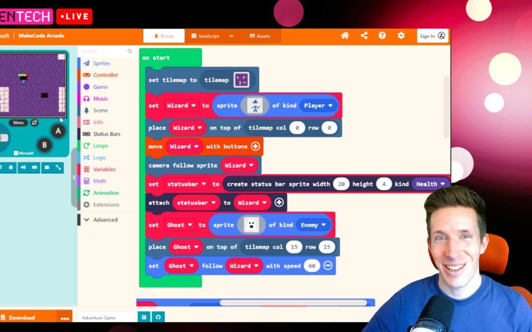 The Game Design strand is a three-part series using Microsoft MakeCode Arcade, taking students from building their very first playable game to creating a real-time online multiplayer experience. The App Design session, which has already taken place, guided students from initial concept through to a working prototype using free tools, and the two Animation sessions return after Easter to cover both stop-motion and digital animation techniques.